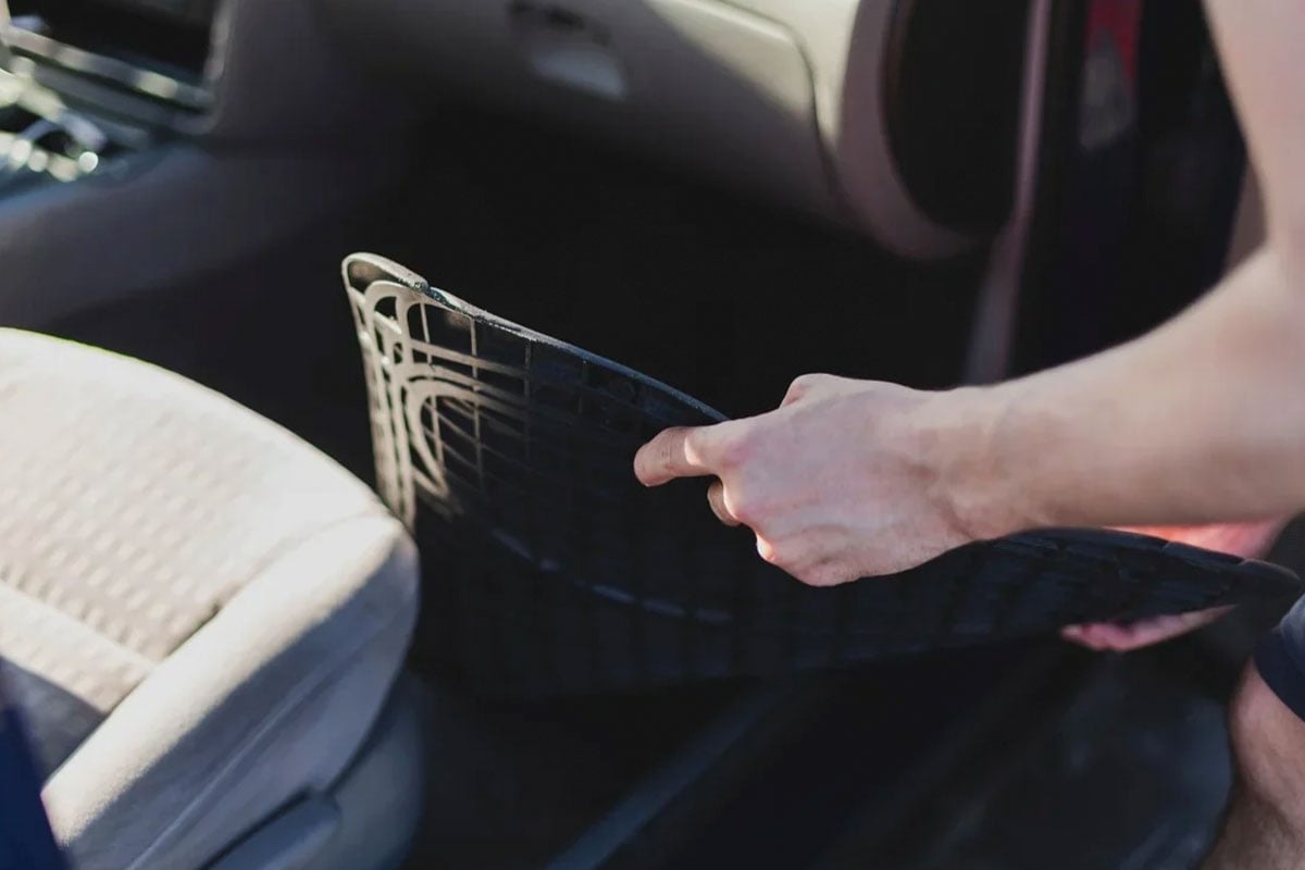 Principalmente nessa época de chuvas, muitos motoristas compram aquele tapetinho de borracha com quadradinhos para colocar sobre o carpete original. Isso evita excesso de sujeira se você entrar com sapato sujo de terra, barro ou lama, pois é só tirar tapetinho de borracha e lavá-lo separadamente.