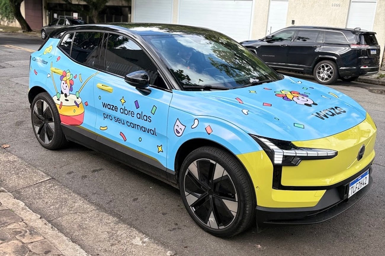 O modelo escolhido para a tarefa é um Volvo EX30, SUV 100% elétrico, que foi adesivado com a identidade visual da campanha. Além de coletar dados, o carro servirá como ativação de marca: os foliões que avistarem o veículo são incentivados a postar fotos nas redes sociais com a hashtag #CarroDoWaze.